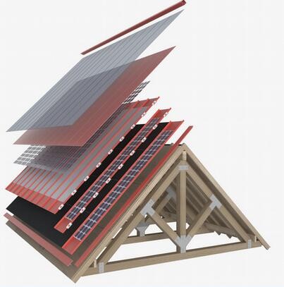 ForwardLabs的太陽能面板是一種復合結構,包含金屬屋頂和太陽能電池板。在朝南的屋頂上,會鋪設包含金屬屋頂的太陽能電池板,那些不能安裝太陽能面板的地方,比如煙囪、天窗、通氣管等,能夠安裝與太陽能面板統一色調的金屬面板,從而不破壞整棟建筑美學的協調性和統一性。即便仔細觀察,也很難發現二者視覺上的差異。
