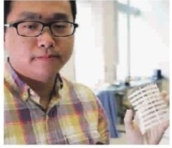 ■研究員吳聰聰和可回收人造光的柔性太陽能板