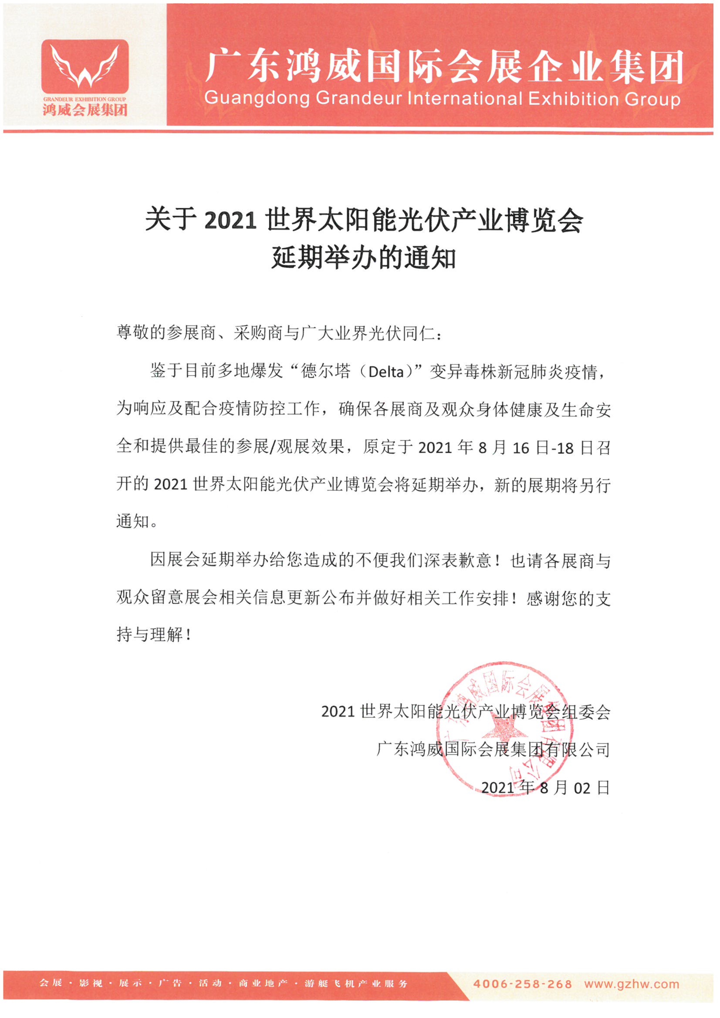 通知 | 關于2021世界太陽能光伏產業博覽會延期舉辦通知